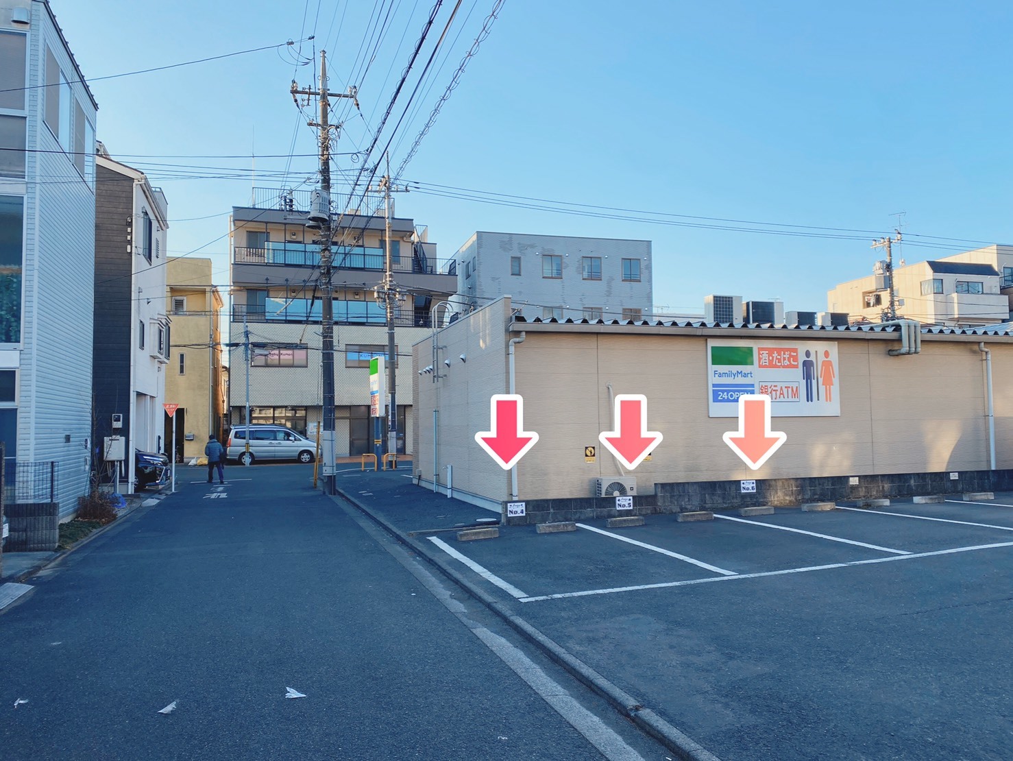 場所はファミリマート(中宿通り店)の横道を入っていただきすぐ裏にあります。