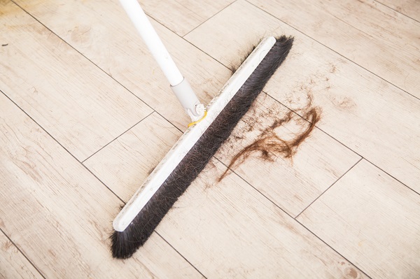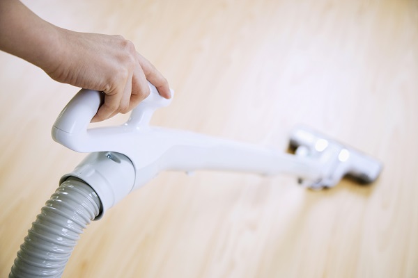 シートからはみ出た毛クズを掃除機にて吸い上げ、後片付けをします。 -